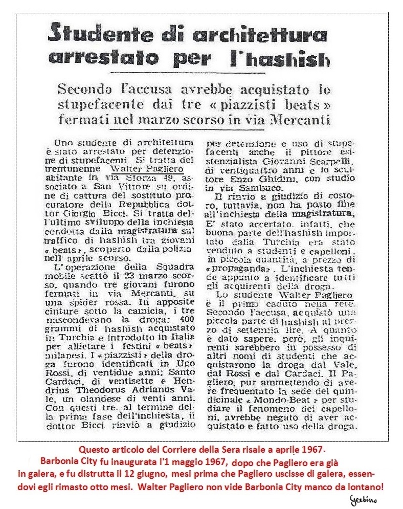 Ma in realtà non ci mise mai piede, non la vide manco da lontano, perché ai tempi di Barbonia City era in galera per una storia di hashish, come documentato da questo articolo del Corriere della Sera