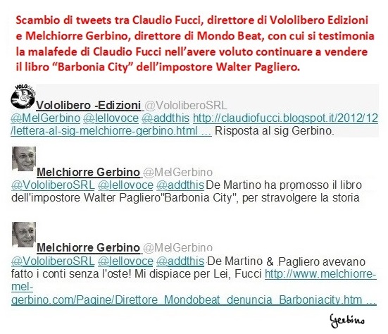 Ma Claudio Fucci, benché avvertito da Melchiorre Gerbino, avrebbe continuato imperterrito a vendere il libro "Barbonia City".