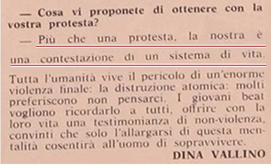 A pagina 9 dello stesso Mondo Beat N. 4, Melchiorre Gerbino pubblicava una foto con una didascalia dove appariva ancora Il verbo "contestare" usato in questa nuova accezione di contestare il sistema, o qualcuno, o qualcosa.