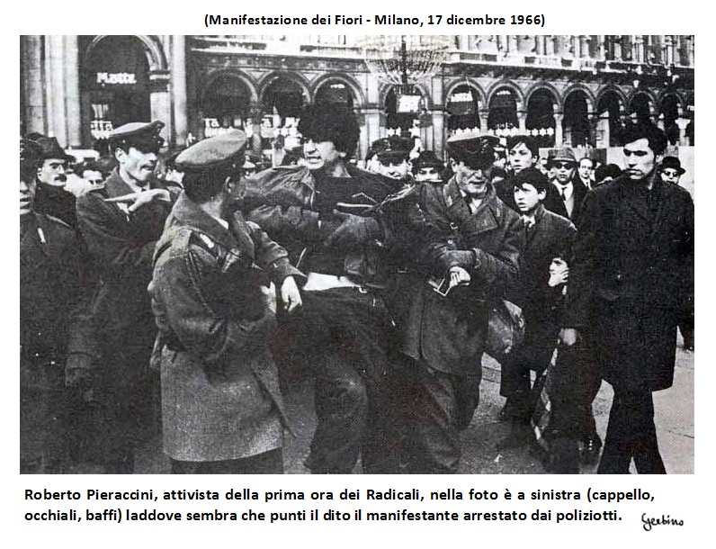 Roberto Pieraccini dei radicali curava la loro sezione milanese, che con quella di Roma era una delle due sole sezioni che i radicali avevano in Italia. Essi erano allora così pochi, che li si poteva contare tutti tra le dita di due mani.