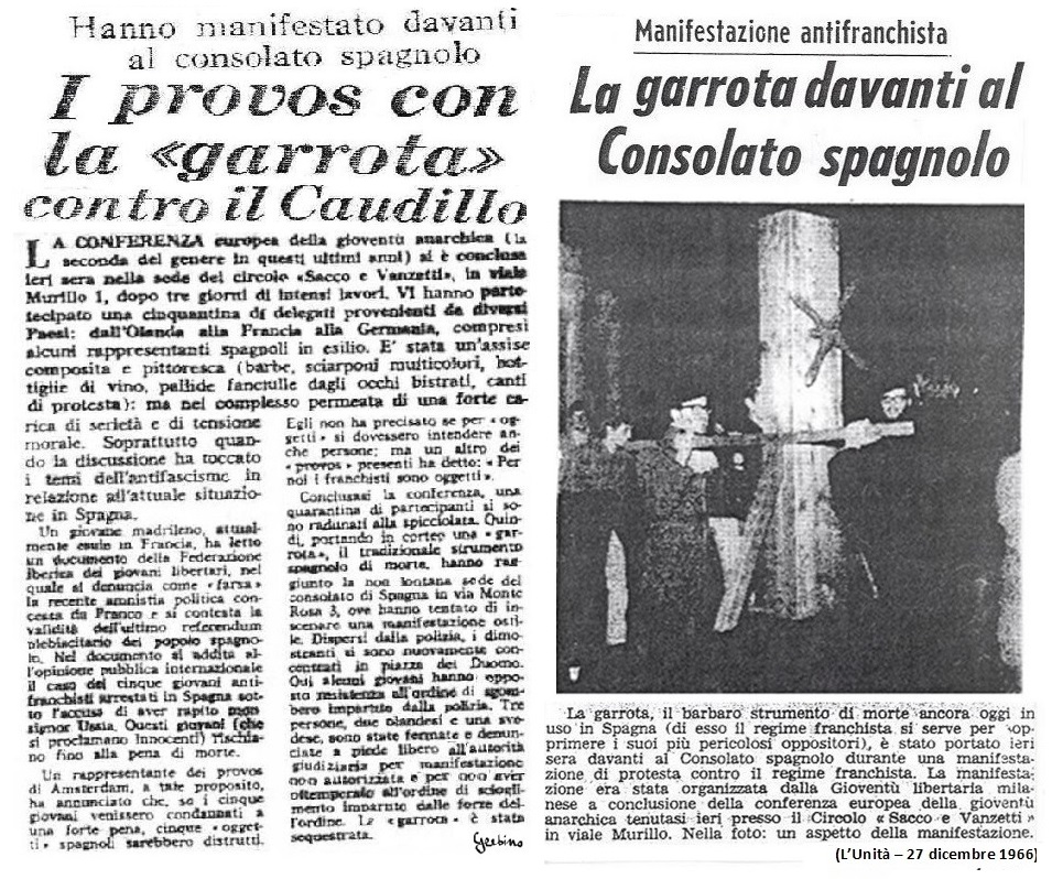 Il 26 dicembre, alla fine della conferenza, gli anarchici e i provos della Sacco e Vanzetti avrebbero inscenato una manifestazione davanti al Consolato spagnolo contro la dittatura del generale Francisco Franco.