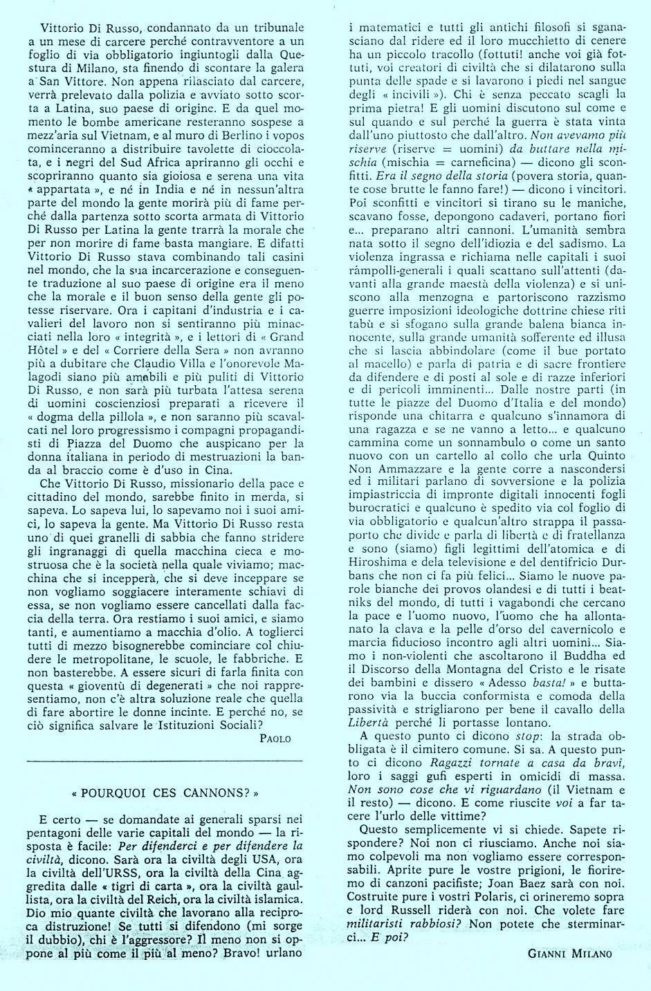 Nella stessa pagina 2, POURQUOI CES CANNONS?, di Gianni Milano.
