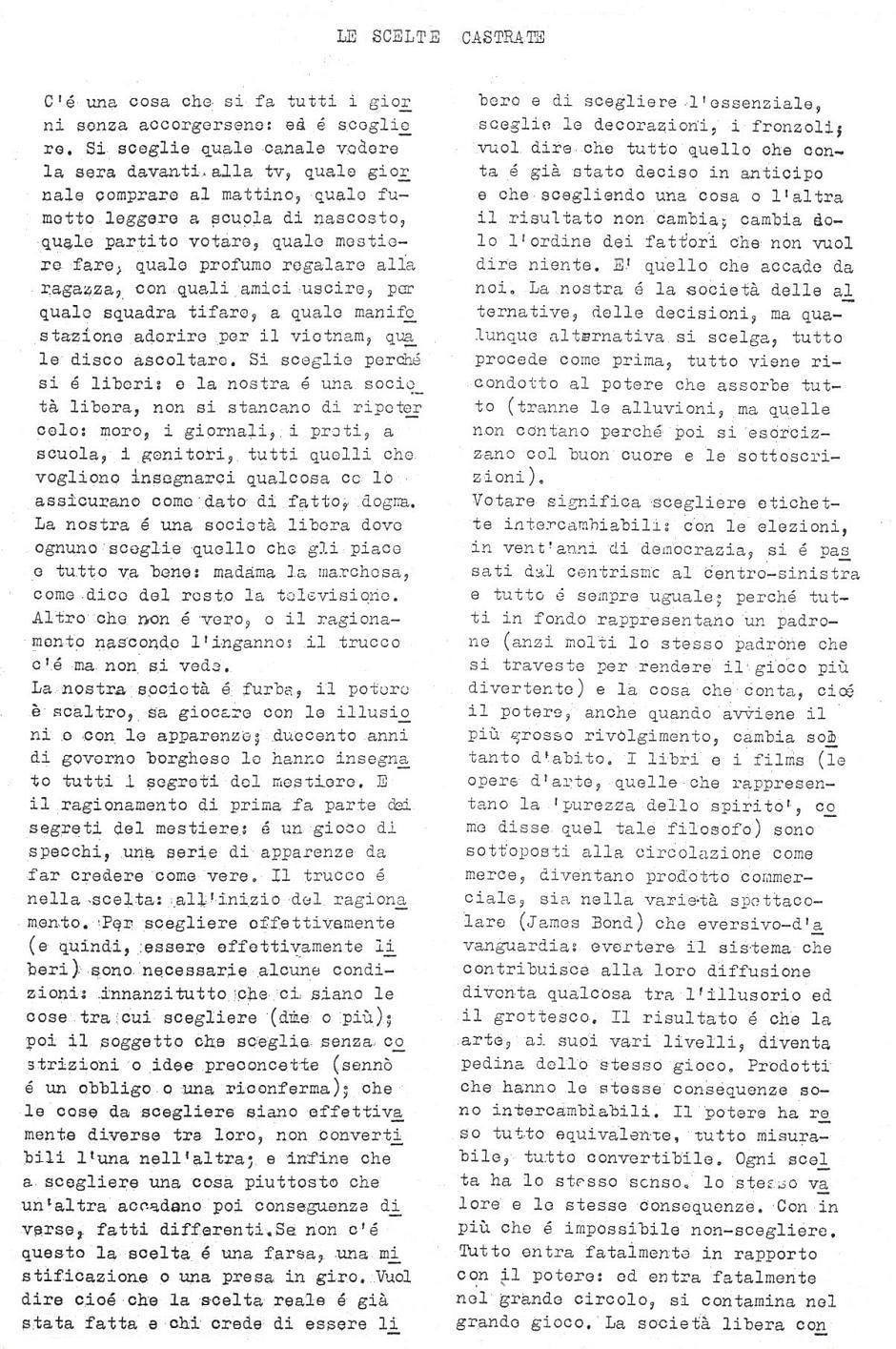 LE SCELTE CASTRATE (continuazione dalla pagina 3) di Agor, pseudonimo di Antonio Pilati.