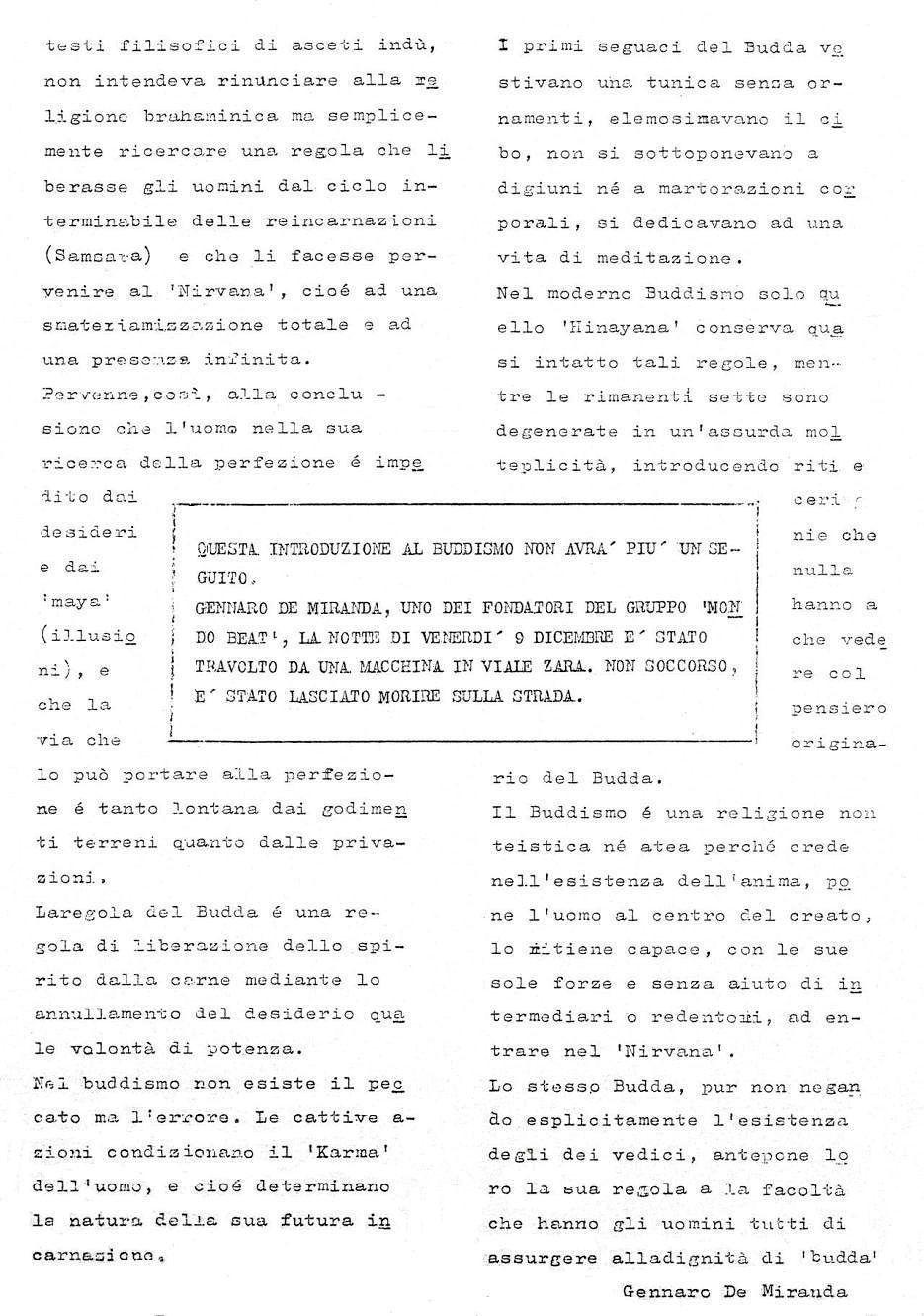 Quando fu trovato il corpo di Gennaro De Miranda, in una delle tasche furono trovati appunti sul buddismo, ma non ancora tanto compiuti da potere pubblicare un altro articolo, oltre questo qui pubblicato.