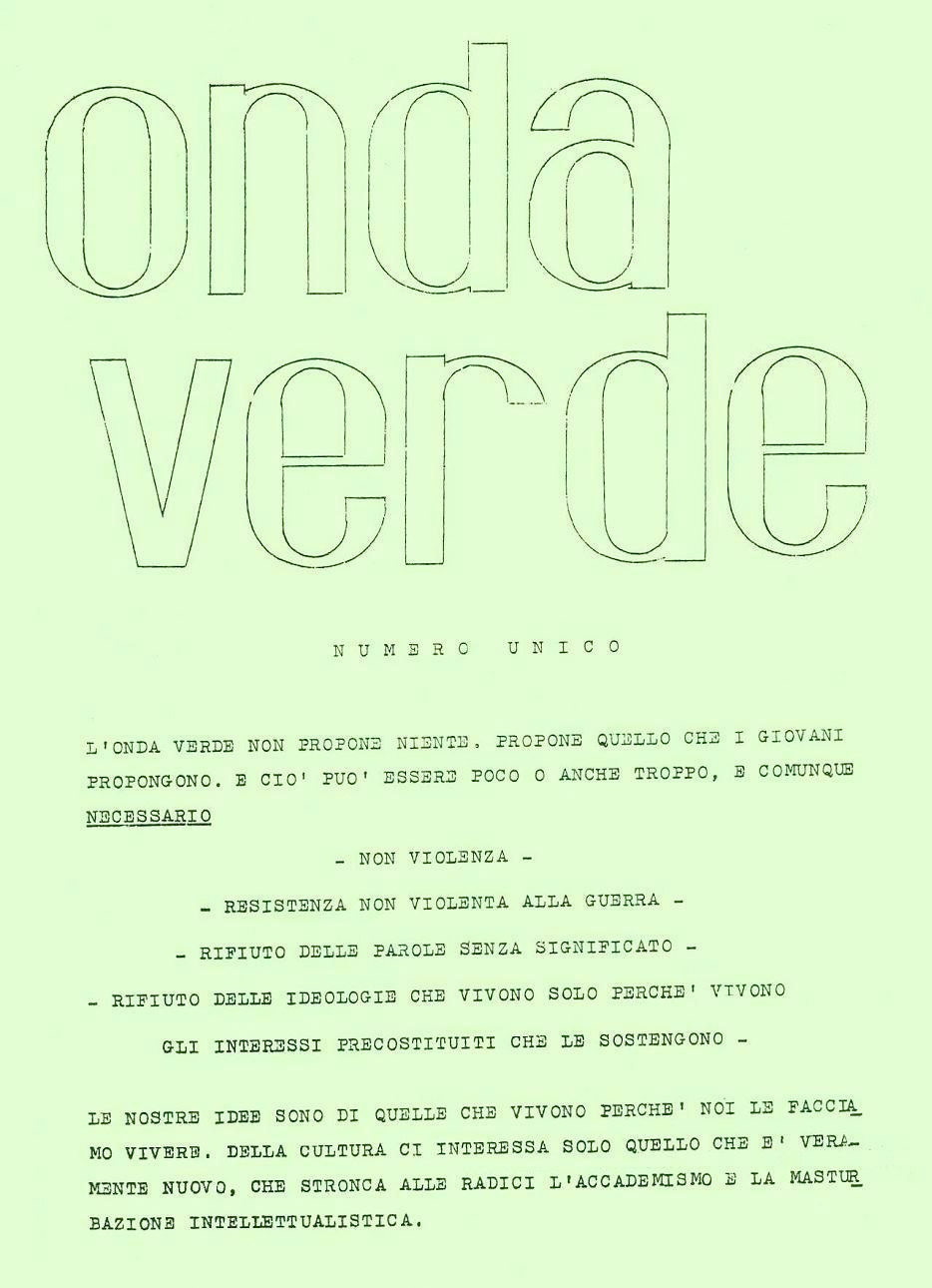 E dunque, anche se i componenti di Onda Verde di numero erano solo una ventina e non avevano né una sede né una rivista, il loro contributo al Movimento sarebbe stato prezioso, perché articoli di Marco Maria Sigiani e di Antonio Pilati avrebbero fatto radicare più profondamente la rivista Mondo Beat nelle scuole milanesi e da quelle scuole, dopo la distruzione militare delle strutture di Mondo Beat, si sarebbe levata la contestazione studentesca, che dagli studenti si sarebbe propagata alla gente comune.