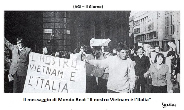 "Il nostro Vietnam è l'Italia". Questo il messaggio di Mondo Beat alla gioventù italiana (foto da AGI - Il Giorno)