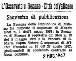 L'Osservatore Romano, organo ufficiale della Santa Sede, non si sarebbe lasciata sfuggire l'occasione di comunicare ai suoi lettori come Mondo Beat fosse una pubblicazione scostumata.