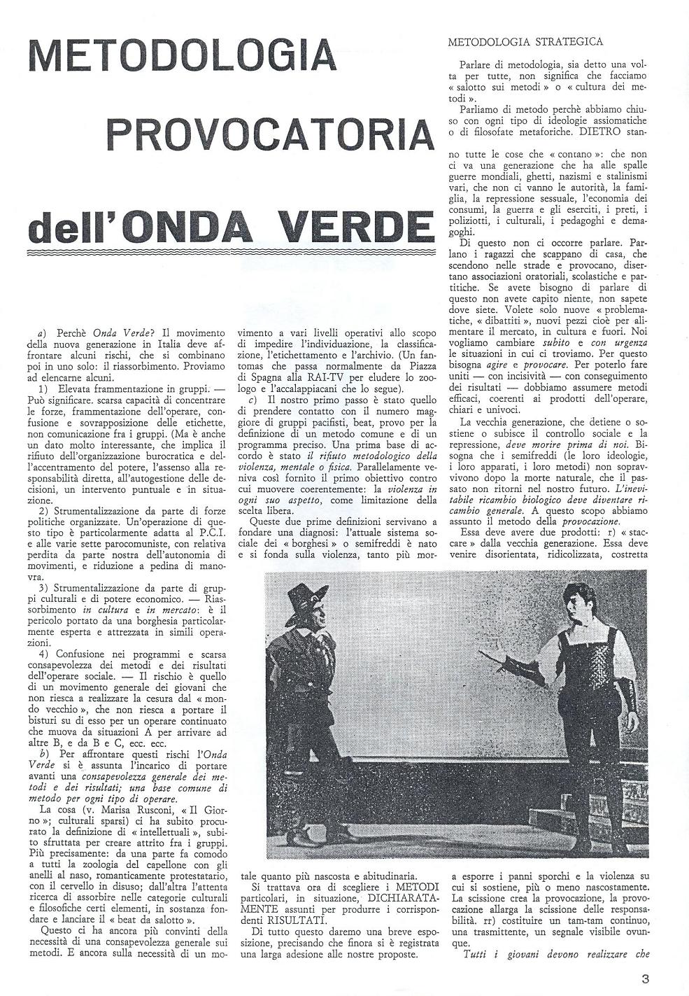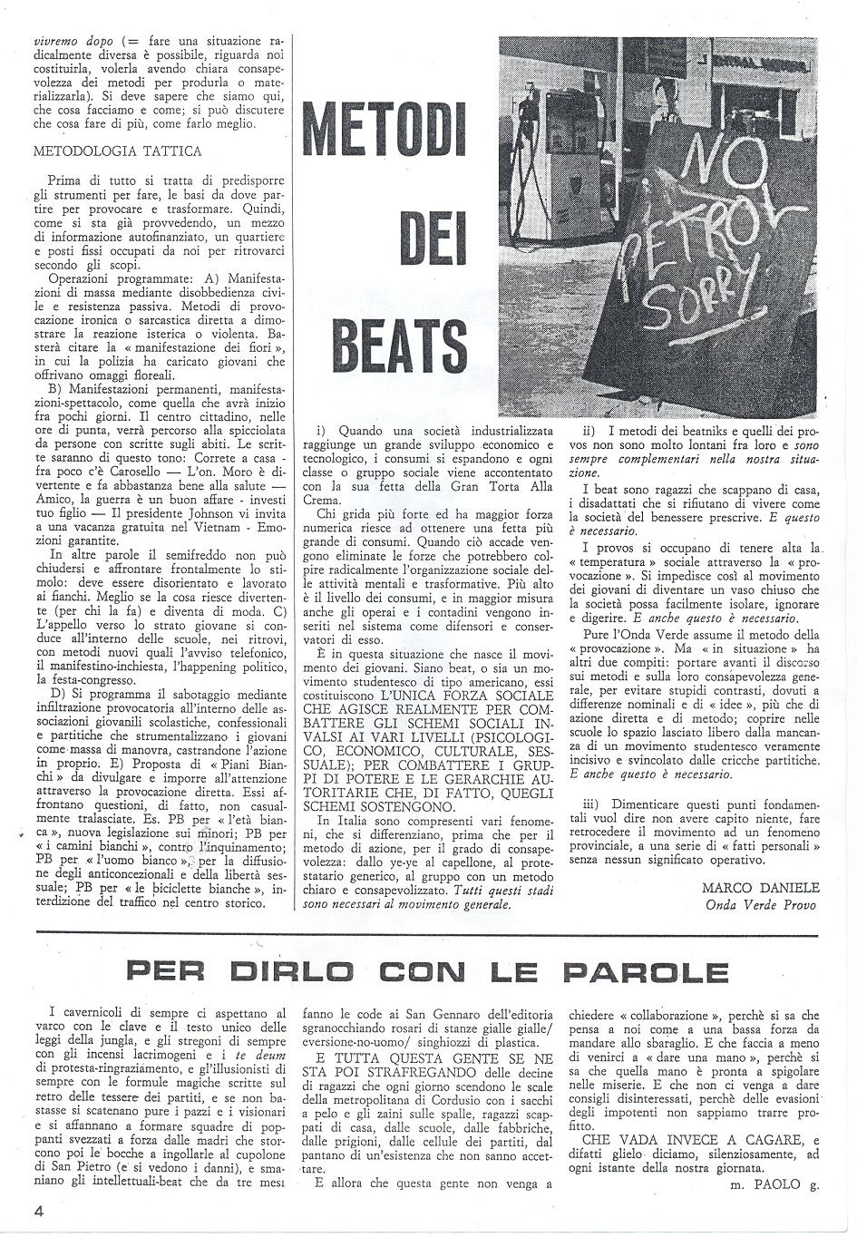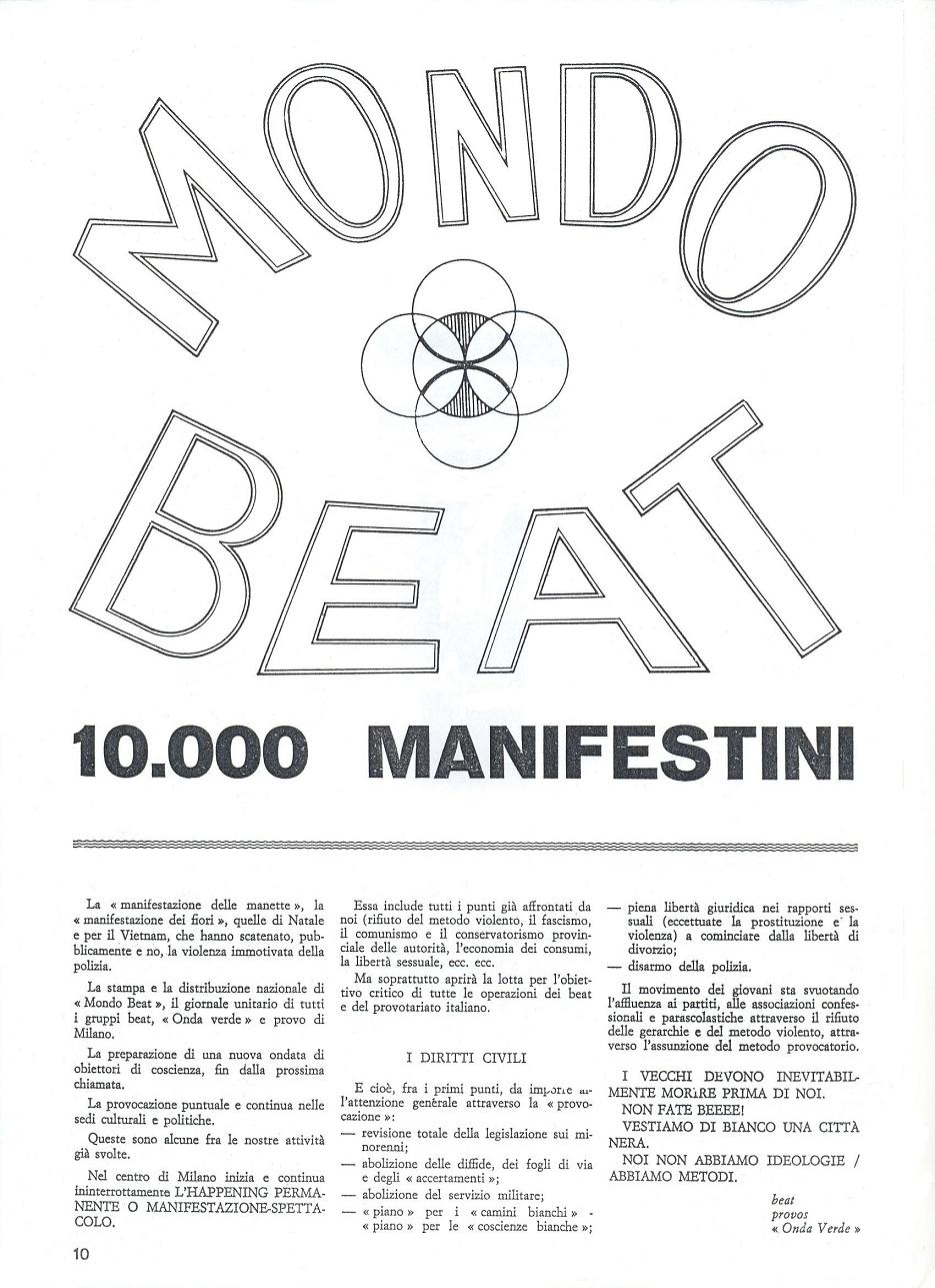 Questo volantino, promosso da Giuseppe Pinelli, fu ciclostilato in 10.000 copie nella sezione Sacco e Vanzetti e distribuito nelle strade e nelle scuole di Milano. Riassumeva eventi cui avevano partecipato giovani beats, provos e ondaverde.