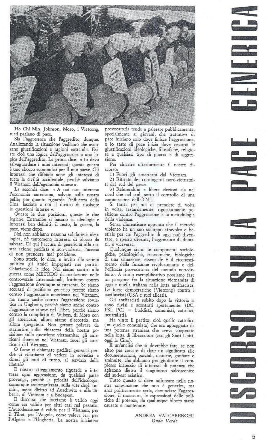 DISCORSO SULLA PACE GENERICA di Andrea Valcarenghi.