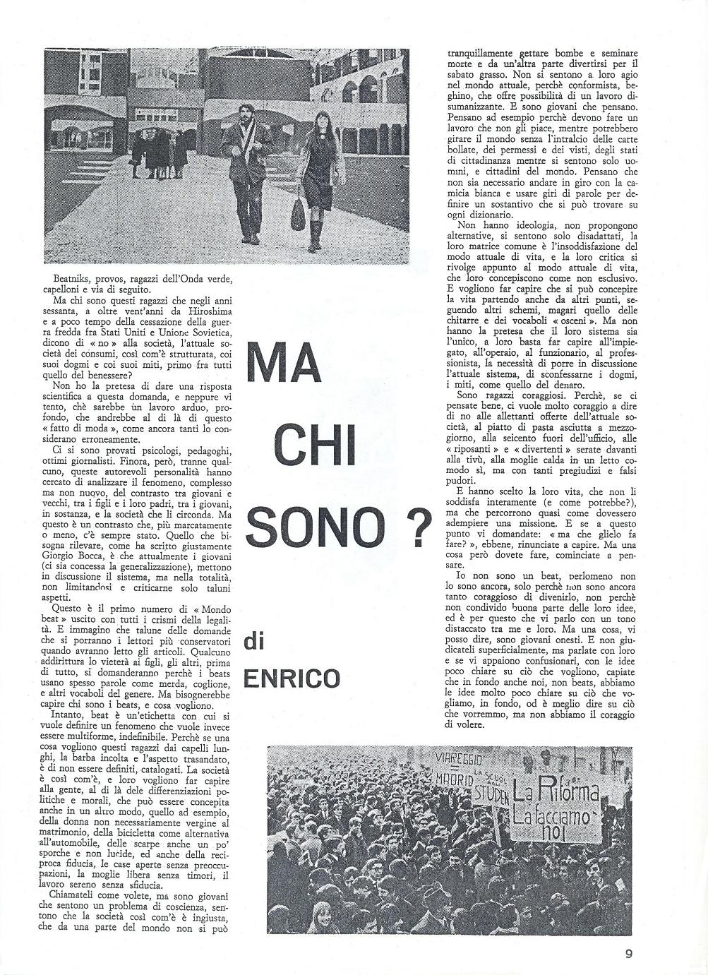 Riproduzione delle altre pagine di Mondo Beat N. 1 e commenti sugli aricoli: