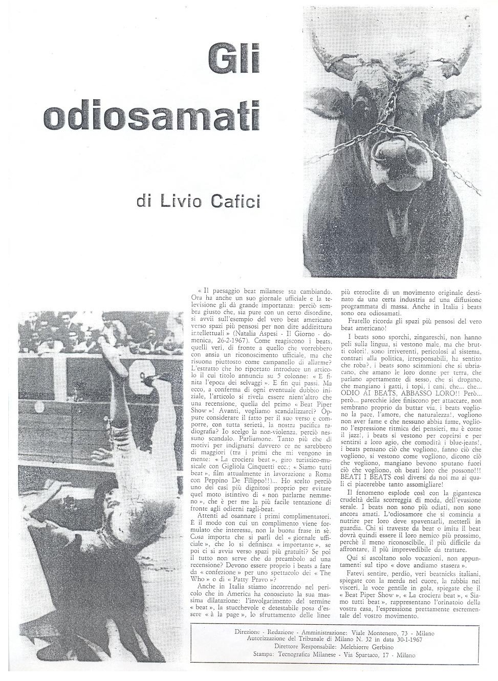 In questa pagina si trova l'articolo "Gli odiosamati", il primo articolo pubblicato da un collaboratore esterno della rivista Mondo Beat.