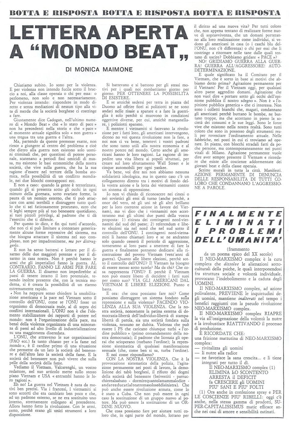 L'attivista comunista Monica Maimone criticava ideologia e strategia del Movimento Mondo Beat.