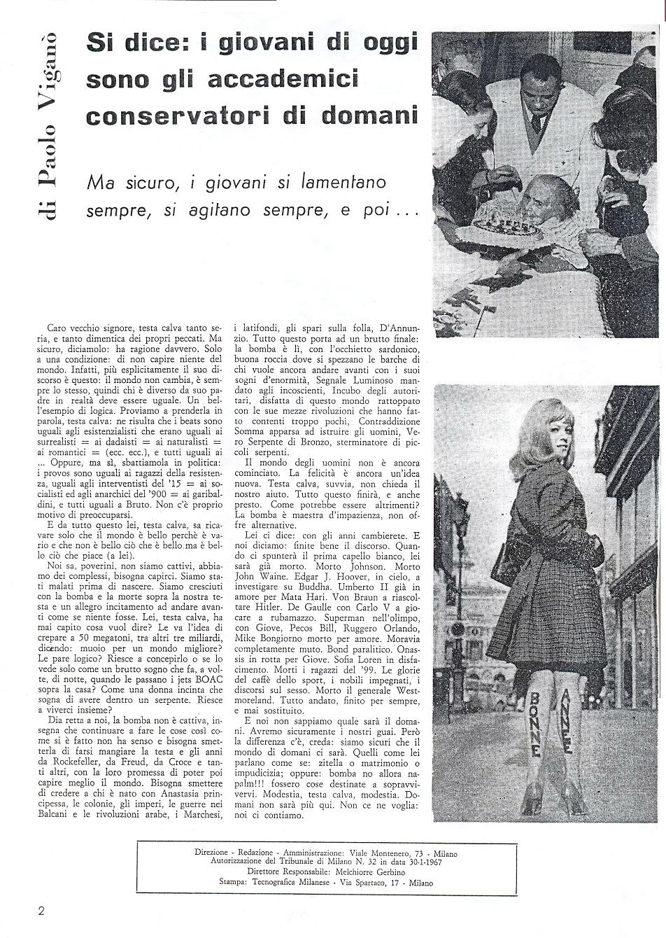 Mondo Beat, finché aveva dovuto confrontarsi con la Questura di Milano, era stato costretto a impegnarsi con tutte le sue risorse per la sopravvivenza del Movimento, ma da quando non avrebbe più dovuto e avrebbe potuto alzare il tiro, avrebbe fatto sperimentare al Corriere della Sera i marchi a fuoco dei modelli della Contestazione.