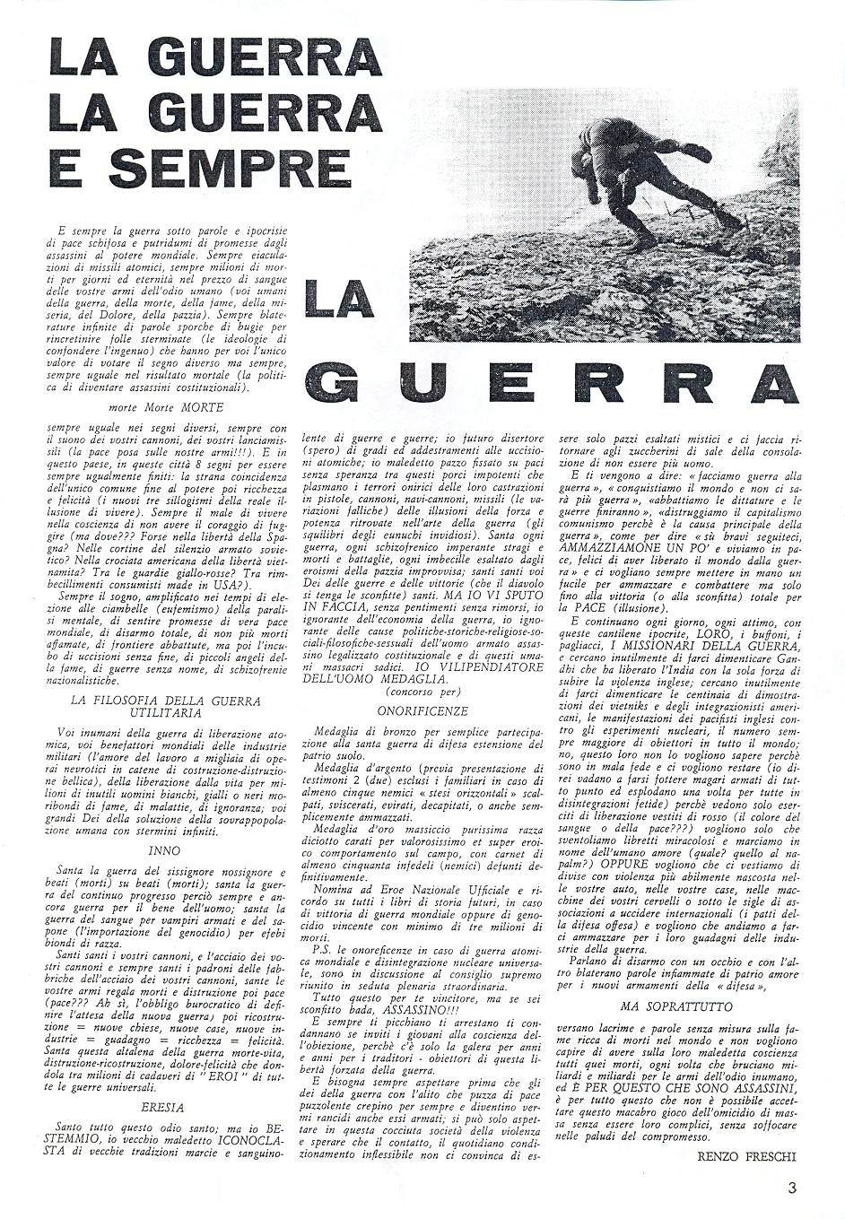LA GUERRA, LA GUERRA E SEMPRE LA GUERRA di Renzo Freschi.