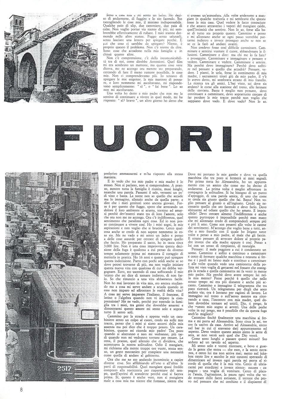 Nota. Nel 1971, cioè quattro anni dopo la pubblicazione di FUORI in Mondo Beat, fu fondata un'associazione di omosessuali denominata F.U.O.R.I. e una omonima rivista (Fuori!). Le lettere che componevano la dicitura F.U.O.R.I. stavano a significare rispettivamente Fronte Unitario Omosessuale Rivoluzionario Italiano. A capire come mai questi omosessuali fossero ricorsi a tanta farraginosa denominazione, bisogna sapere che Fernanda Pivano l'aveva suggerita loro. Essi avrebbero difatti dichiarato, a proposito della creazione della rivista 'Fuori': "La rivista era stata concepita pochi mesi prima, durante riunioni informali tenute nella casa milanese di Fernanda Pivano e Ettore Sottsass, cui parteciparono omosessuali di Torino, Milano e Roma."