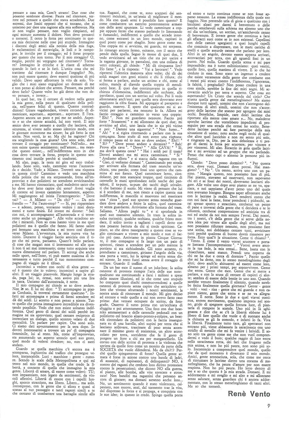René, un trentenne impegnato per l’affermazione dei diritti civili degli omosessuali (come ho già specificato, il termine "gay" non era ancora in uso ai tempi di Mondo Beat), conviveva con un ragazzo scappato di casa, di cognome Vento: donde lo pseudonimo René Vento.