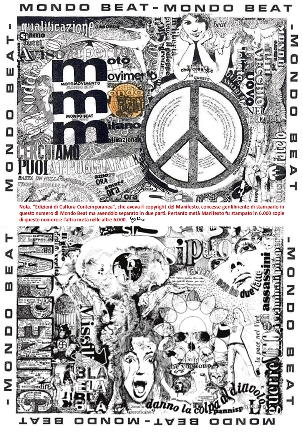 Parte superiore del Manifesto di Mondo Beat di Giò Tavaglione, stampata in 6.000 esemplari dei 12.000 di questo numero.