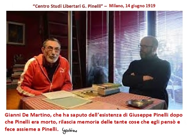Gianni De Martino, che ha saputo dell'esistenza di Giuseppe Pinelli dopo che Pinelli era morto, rilascia memoria delle tante cose che egli pensò e fece assieme a Pinelli.