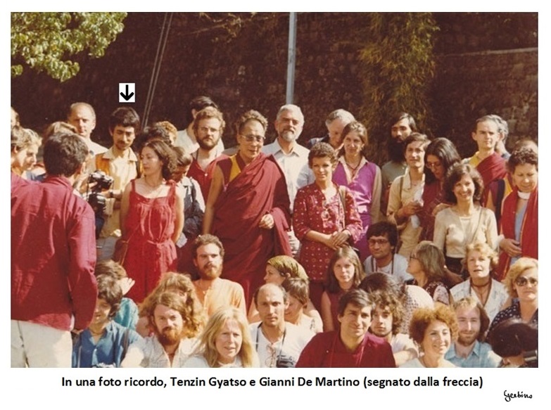 In una foto ricordo, Tenzin Gyatso e Gianni De Martino (segnato dalla freccia).