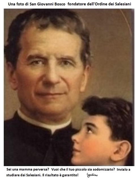 A seguire la storia di uno sventurato, sodomizzato in tenera età da preti salesiani suoi precettori e rimasto poi tutto il resto della sua vita in loro balia.