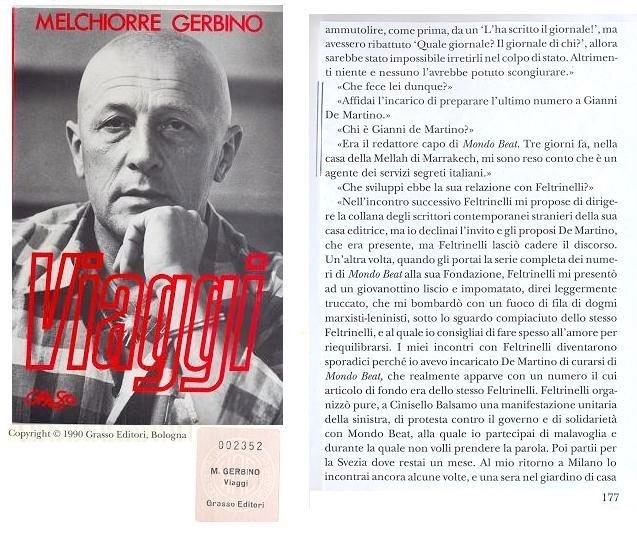 Poco tempo dopo la pubblicazione di "Viaggi", la Grasso Editori fu fatta fallire dai servizi segreti italiani e a insaputa di Melchiorre Gerbino diecimila copie del suo libro furono incenerite per ordine del curatore fallimentare. E ciò non sarebbe avvenuto perché Melchiorre Gerbino aveva rivelato che Gianni De Martino era un agente dei servizi segreti, ma perché aveva ricostruito la storia di Mondo Beat e il Vaticano aveva sperato che sulla storia di Mondo Beat calasse il silenzio, perché il Vaticano teme che i giovani delle nuove generazioni, a conoscere quella storia, potrebbero esserne ispirati e sollevare una nuova ondata di Contestazione.
