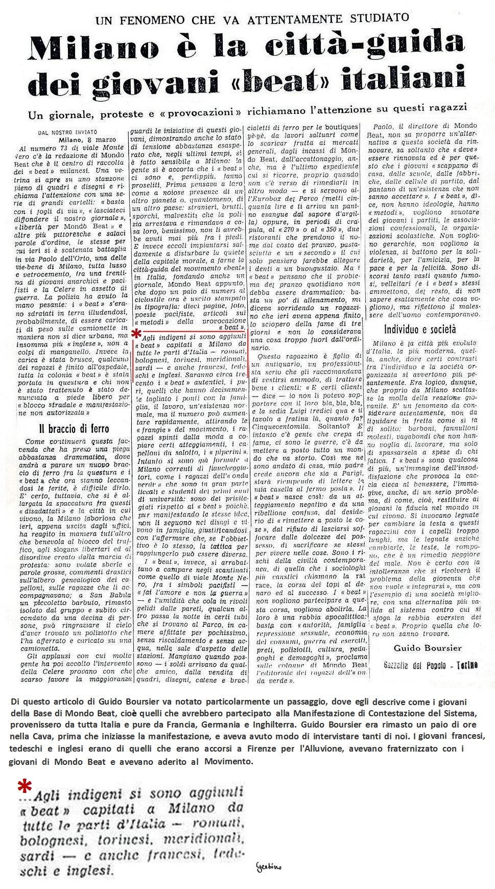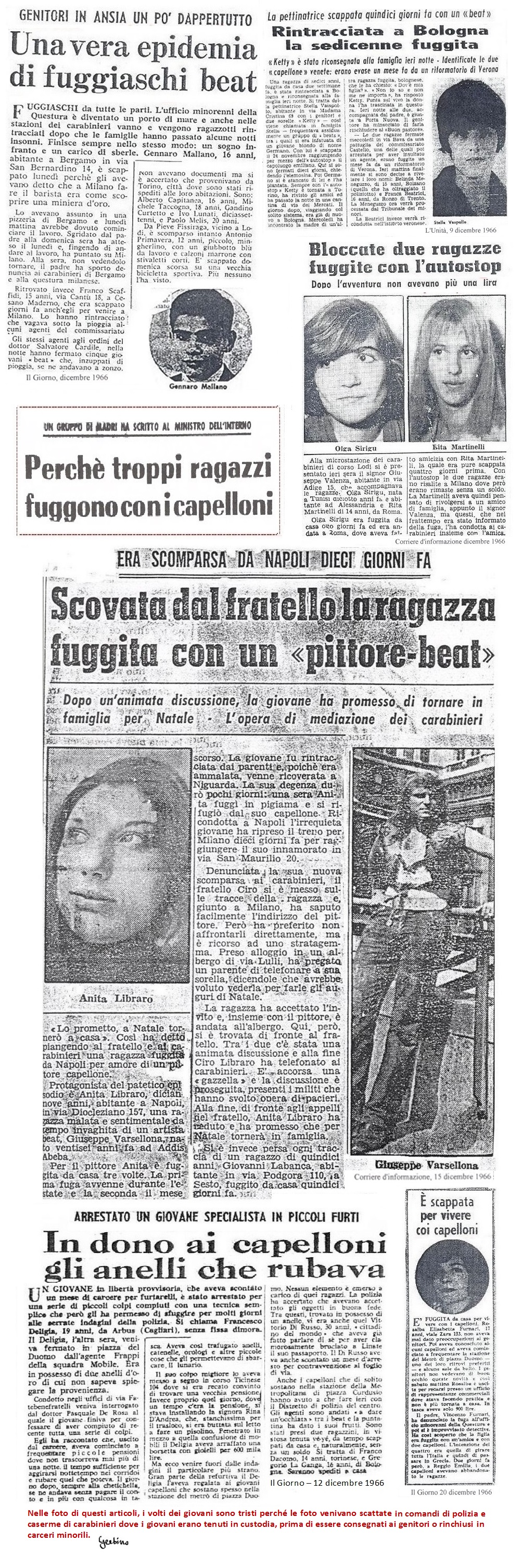 Il fenomeno di giovani che da tutta Italia fuggivano da casa e venivano a Milano per unirsi ai giovani di Mondo Beat aveva già fatto notizia dal dicembre 1966. Qui alcuni articoli apparsi a dicembre di quell'anno