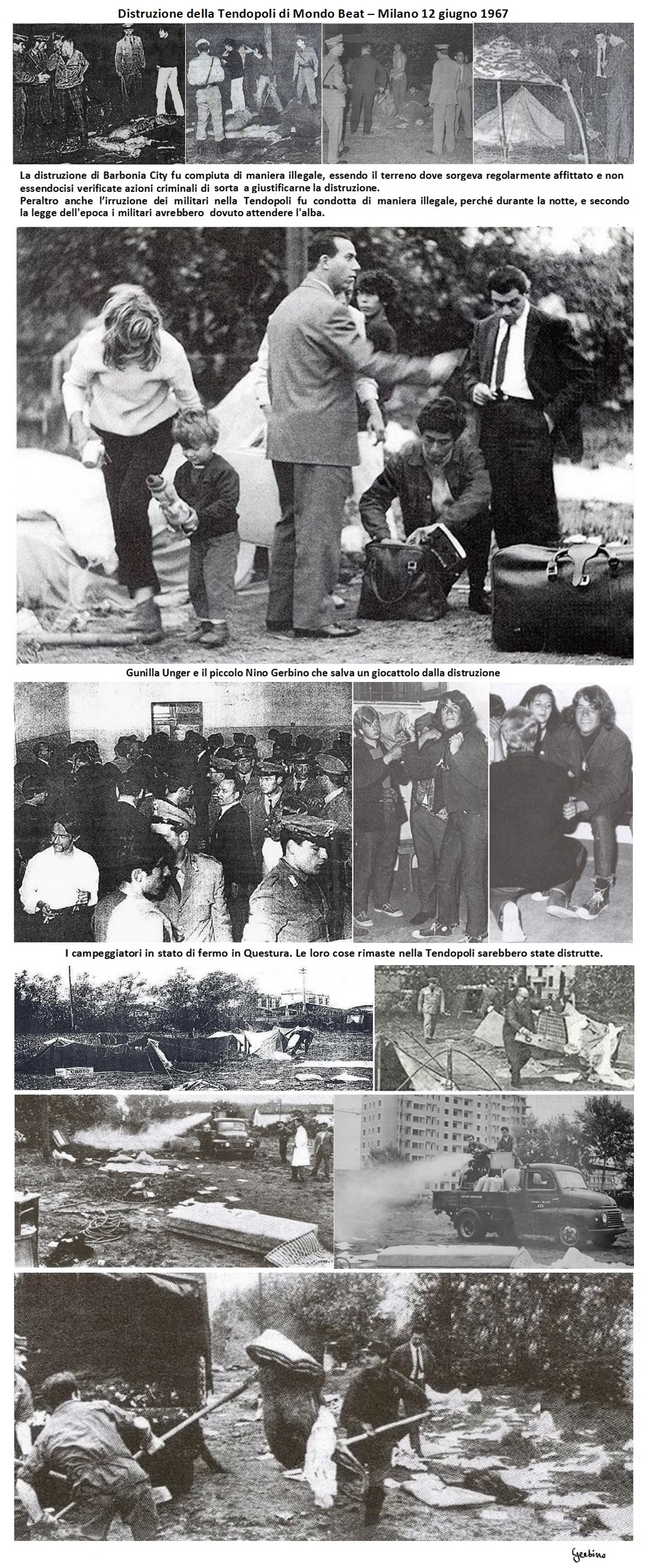 E niente di niente in "Beat e Mondo Beat" di Matteo Guarnaccia sulla drammaticità degli eventi della distruzione militare delle strutture di Mondo Beat, a causa dei quali si sarebbe manifestata la contestazione di massa. E difatti poche settimane dopo la distruzione di Barbonia City, alla riapertura delle scuole, i tanti studenti che avevano frequentato la Tendopoli avrebbero fatto dilagare la Contestazione negli istituti milanesi, e da lì la Contestazione sarebbe dilagata poi tra la gente comune, prima a Milano, poi in tutta Italia, poi in Francia...
