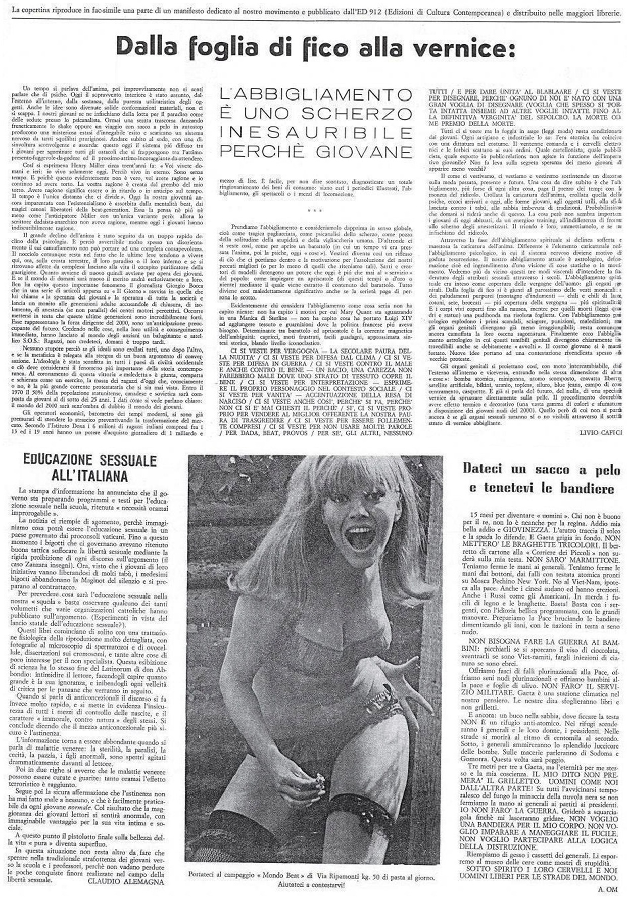 E per fare intendere come la gente comune avesse gradito la rivoluzione sessuale promossa dalla Contestazione, che era gentile, ironica, interclassista, qui una foto, pubblicata nel sesto numero della rivista Mondo Beat