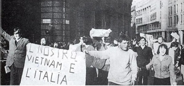 Manifestazione di Mondo Beat dell'8 aprile 1967. "Il nostro Vietnam è l'Italia". (Foto AGI - Il Giorno)