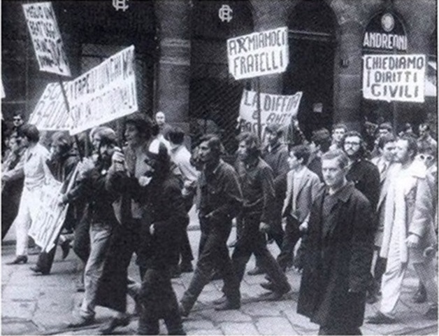 La Contestazione dalle vetrate della Cava, la sede del Movimento Mondo Beat.