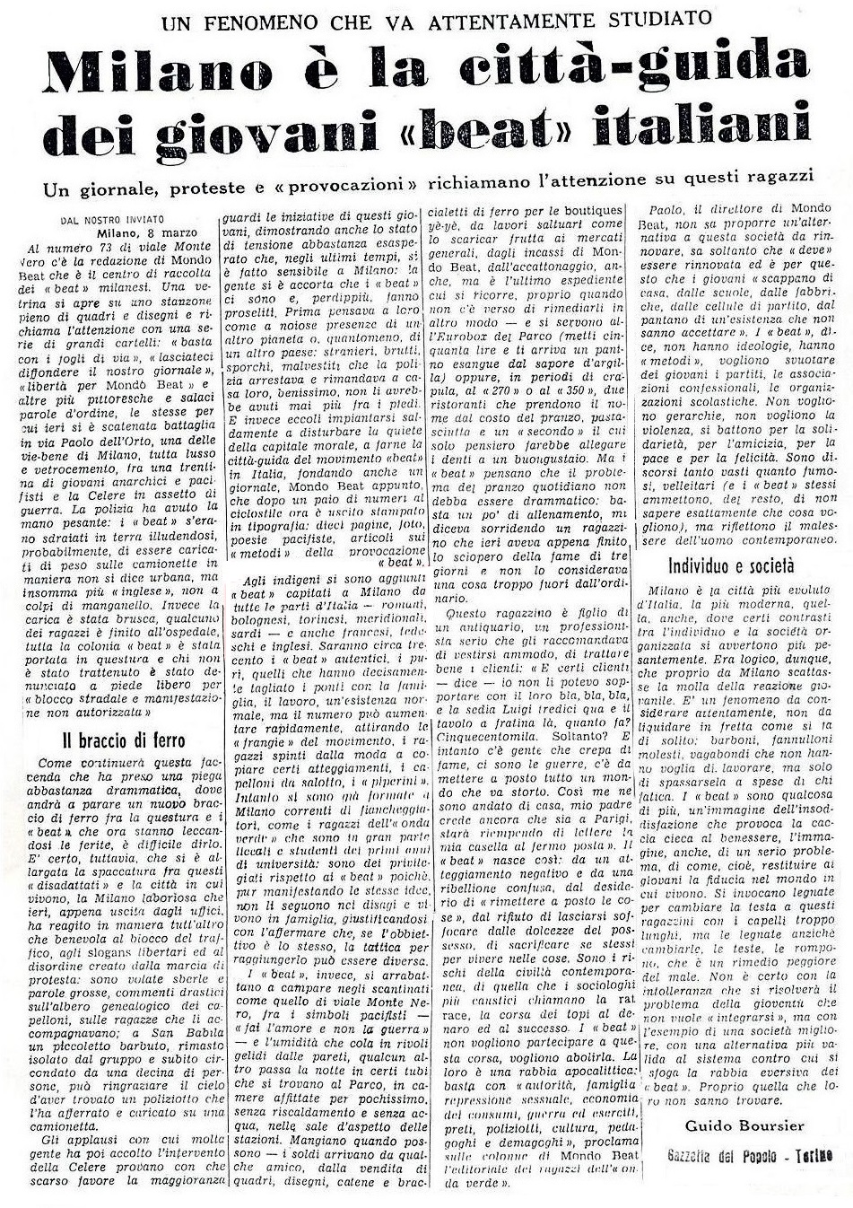Guido Boursier: "The local ones have been joined by Beats arrived in Milan from all over Italy - Romans, Bologneses, Turineses, Southerners, Sardinians - and also Frenchmen, Germans, Englishmen."