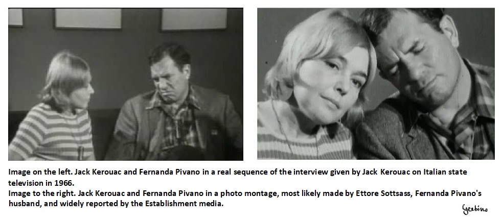 Image on the right. Jack Kerouac and Fernanda Pivano in a photomontage, most probably made by Ettore Sottsass, Fernanda Pivano's husband, and widely diffused by the media of the Italian Establishment.