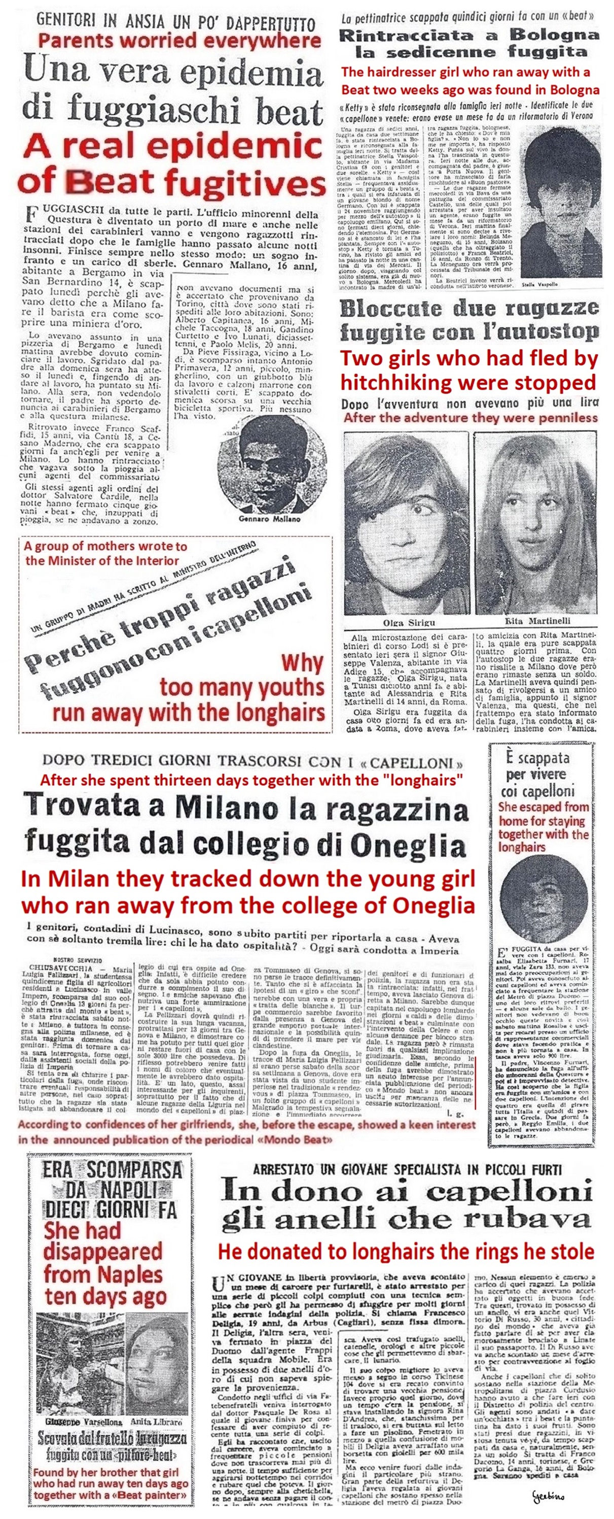 December 1966 marked the success of the Mondo Beat Movement. By the end of that month, hundreds of youths, from all social classes and from all over Italy, had joined the Movement. Young people understood that Mondo Beat was promoting a real revolution, because it was above all an existential revolution and they wanted to take part in it. Many fled their families to join the Beats. Many were the girls, as numerous as the boys, or even more.