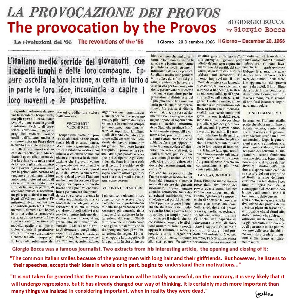 (Closing of the article) "It is not certain that the Provo revolution will be completely successful, on the contrary, it is very likely that it will undergo regressions, but it has already changed our way of thinking, it is certainly more important than many things that we insisted on believing were important when in reality they were already dead."