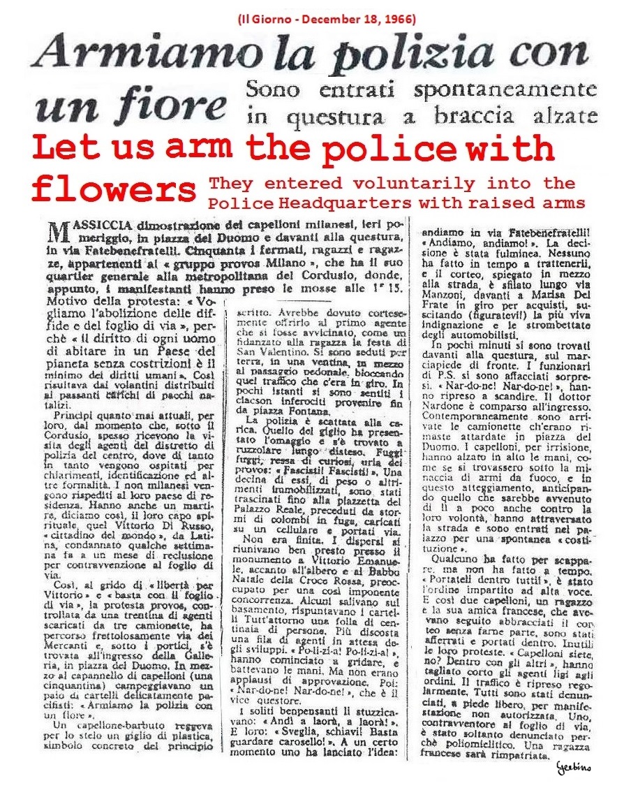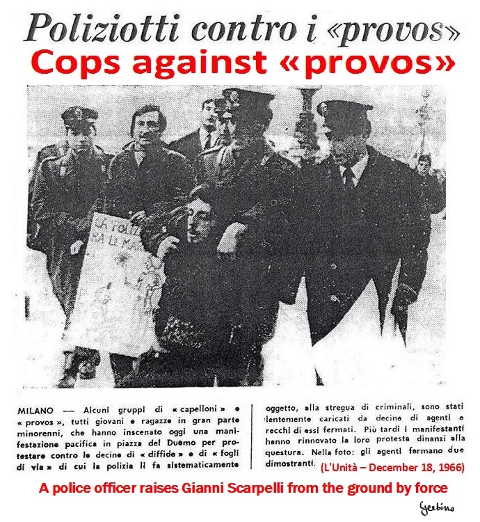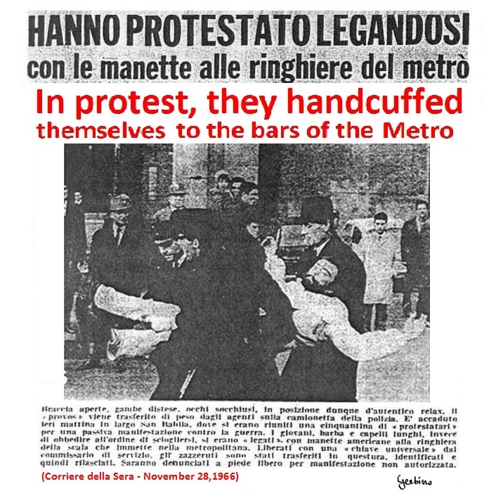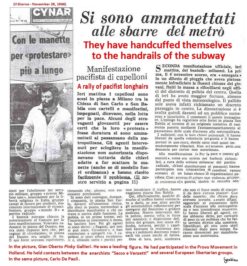 The day after Vittorio Di Russo was arrested in the underpasses of Cordusio metro station while he distributed copies of Mondo Beat magazine, we decided to make a demonstration for his release. Thus we contacted Milanese anarchists and radicals to get them to participate.