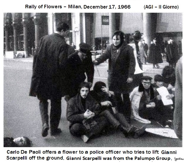 Gianni Scarpelli was the leader of the "Gruppo Palumbo". This group consisted of 6 people only, but they were famous because they were imaginative and audacious. The group was called Palumbo because they met in an apartment at the door of which it was written "Palumbo", that is, the family name of the previous tenant. Carlo De Paoli was one of the most prominent young people from Mondo Beat.