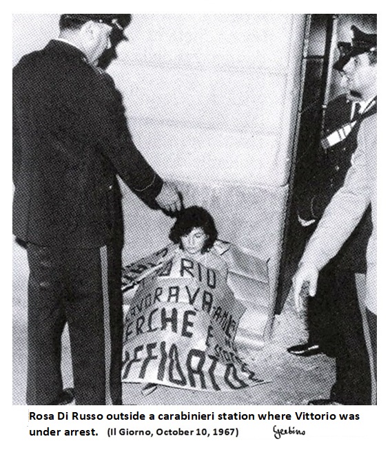 As for Vittorio, while he feared that the police might arrest him, he was also nervous, because he realized that he had lost his influence on the young people of the Movement. It had remained inactive for too long, in a period in which exceptional events had occurred, such as the Handcuff Demonstration and the Flower Demonstration, and after these events to guide the Mondo Beat youths you had to direct them to further actions. But Vittorio could not act, because if he had done so the police would have arrested him immediately and a judge would have sentenced him to three months in prison.