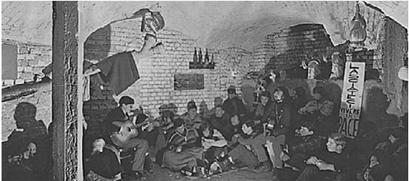 From the first hours of opening, there was the arrival to the Cave of Beats and Provos who lived in Milan. The following day, boys and girls arrived from the hinterland, then from everywhere. Youths who were in Florence from the time of the Flood begun to return to Milan and along with them arrived youths from other countries.