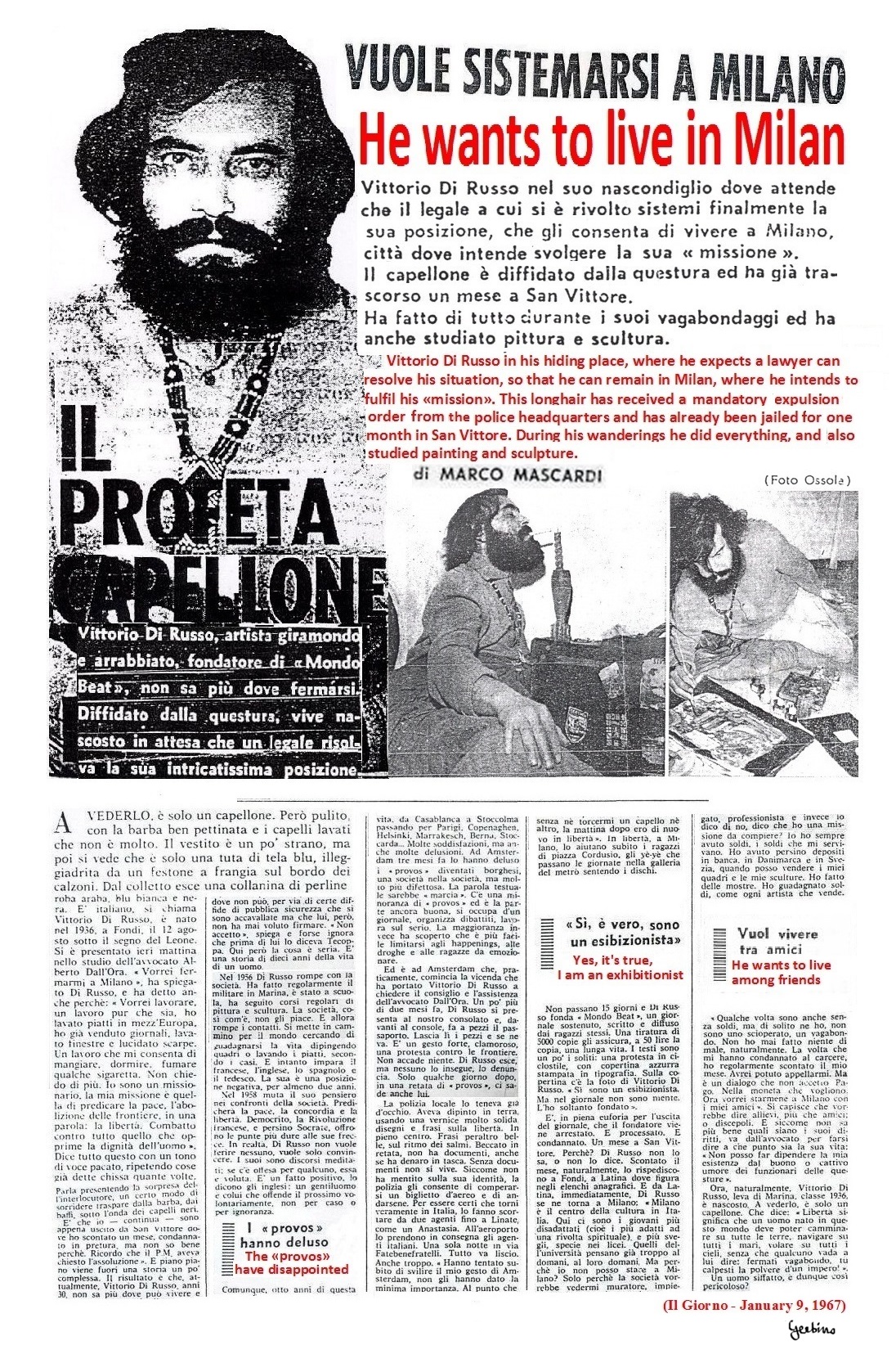 On 1 January 1967 Melchiorre Gerbino telephoned Ezio Chiodini, the journalist he met in the Cinisello Balsamo morgue on the sad occasion of the death of Gennaro De Miranda. On that occasion Ezio Chiodini expressed his interest in following the events of the Mondo Beat Movement, therefore Melchiorre Gerbino would invite him to his apartment, where Vittorio Di Russo was hiding. Informed of Vittorio Di Russo's situation, Ezio Chiodini would in turn inform Italo Pietra, director of Il Giorno, the newspaper for which he worked.