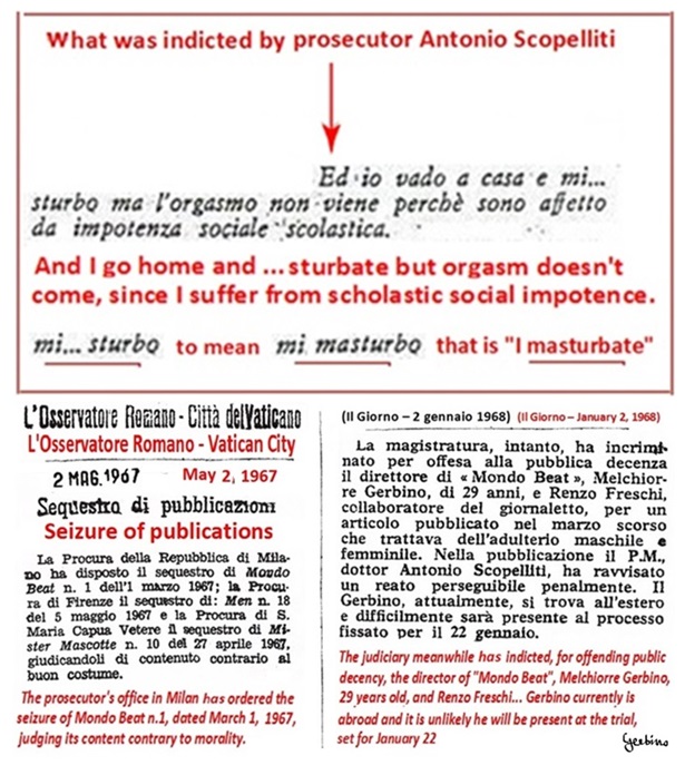 Above is the passage from Renzo Freschi's article which, according to prosecutor Antonio Scopelliti, justified the seizure of this issue of Mondo Beat.