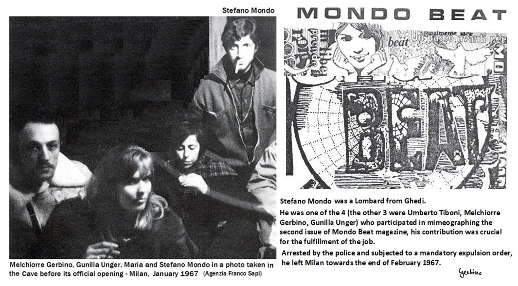 Stefano Mondo was a Lombard from Ghedi. He was one of the four who contributed to the printing of the second issue of Mondo Beat magazine (the other three were Gunilla Unger, Umberto Tiboni, Melchiorre Gerbino). Stefano Mondo's contribution was important for the fulfillment of the work.
