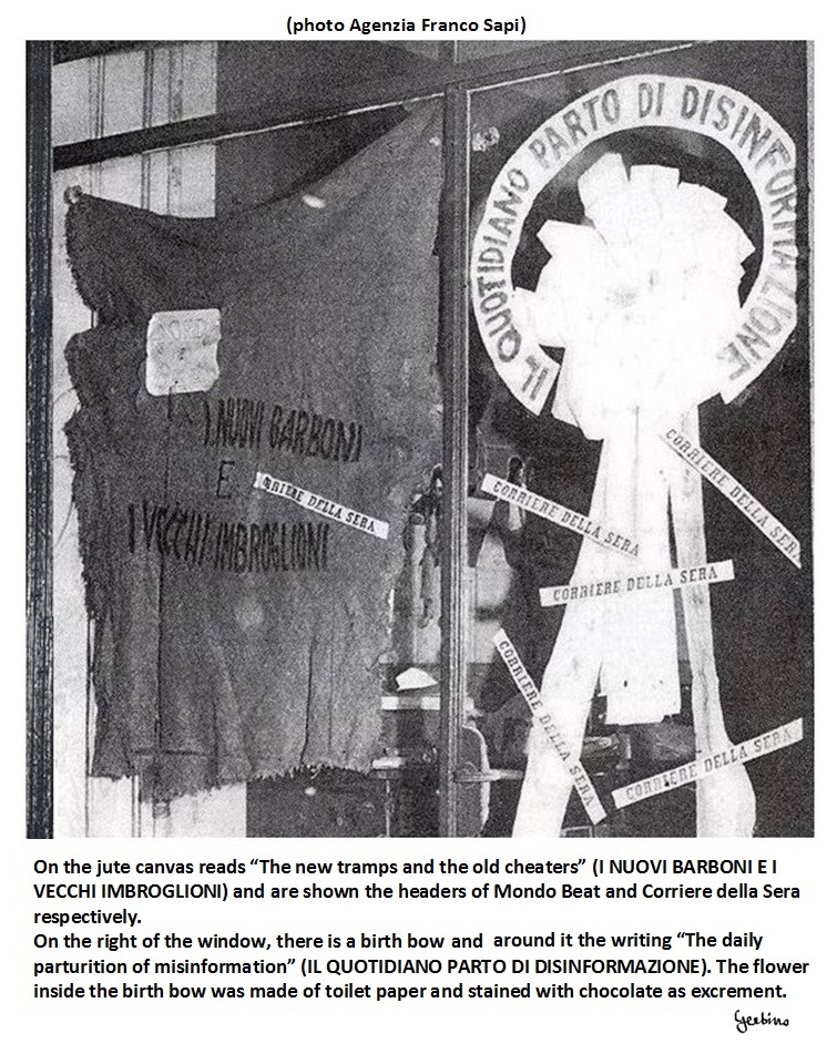 Keep in mind that we were in the year 1967, a time when ordinary people blindly believed in what was written in the newspapers and the Corriere della Sera, being the main Italian newspaper, was considered a sacred institution. Then, consider the shocking effect this tarp had on ordinary people.