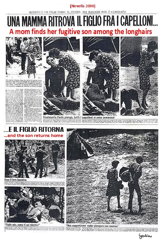 The reason for this curiosity depended on the fact that, although not all families had a son or a daughter who had run away from home to join the Beats, nevertheless there were of these cases among their relatives or friends, so people knew that young people were fleeing their homes to participate in an existential revolution promoted by Mondo Beat.