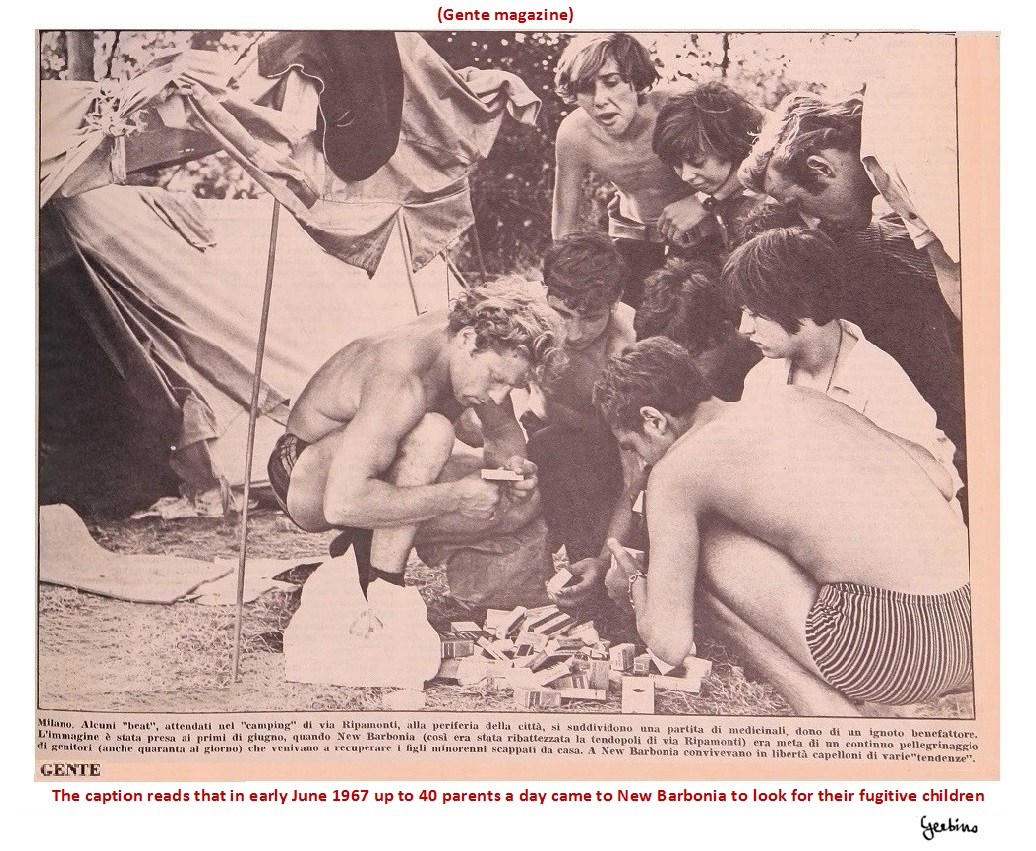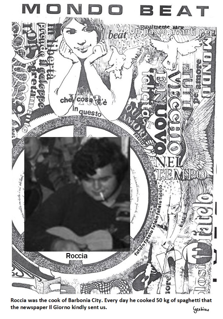 Some impostors, at the service of the Vatican, describe Barbonia City as a place where the Beats camped freely, which in other words can be said as a place where the Beats camped illegally, but it wasn't like this at all. The field had been duly rented and fenced, thanks the money provided by Mondo Beat magazine, which had a surplus even though its distribution was obstructed and despite the fact that it did not receive any kind of money support and did not publish any type of advertising. These impostors distort the truth in an attempt to justify the behavior of the Italian judiciary, which would have ordered that a private property, that is the Mondo Beat's campsite, should be invaded and destroyed by the military, while the campers were in detention in the premises of the Milan Police Headquarters although they were not indicted of any crime. This shameful behavior was dictated to the judiciary by the Moro government, which was a political creature of the Vatican and obeyed its orders. The old fags in the Vatican would have gone mad, because of the sexual revolution which was going on in Barbonia City, and would have ordered its destruction.