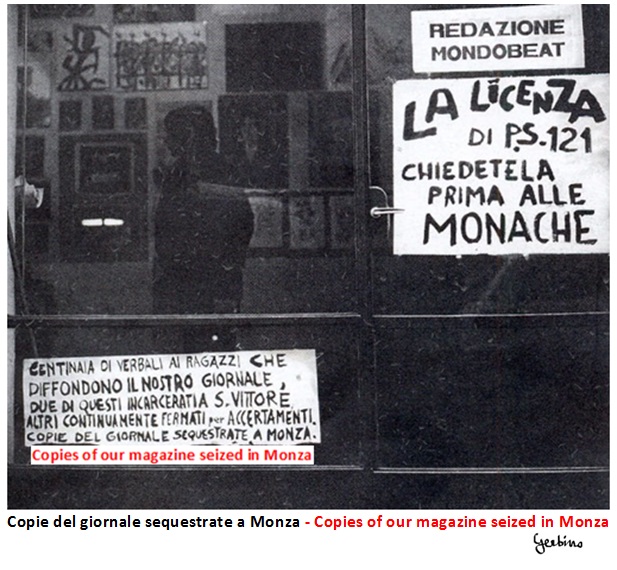 Giuseppe Montesano had shown the type of police commissioner he was when he had ordered his agents to confiscate copies of the third issue of Mondo Beat magazine, that issue whose cover was made up by a collage of mandatory expulsion orders, and his agents had seized the copies from the youths who sold on the streets of Monza. In fact, at the time of the hunger strike in the Cave, we had publicly denounced this situation