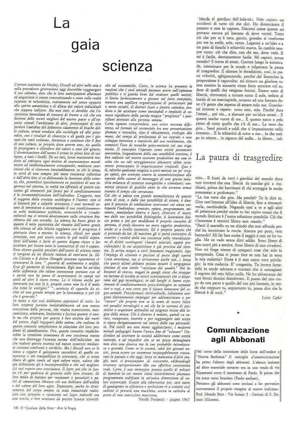 there are more articles of protest by those intellectuals who attended the event of the dissolution of the Movement, and on page 10, signed Livio Cafici, there is one more article by that external contributor
