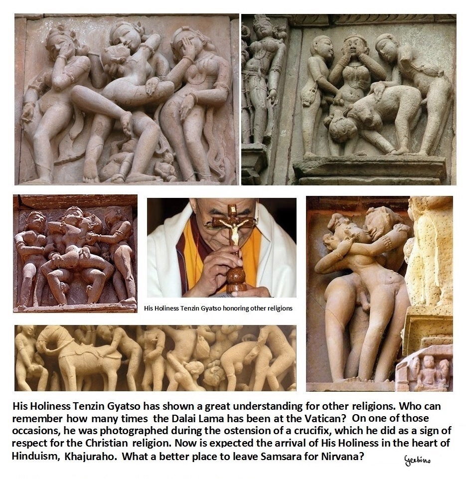 His Holiness Tenzin Gyatso has shown a great understanding for other religions. Who can remember how many times the Dalai Lama has been at the Vatican? On one of those occasions, he was photographed during the ostension of a crucifix, which he did as a sign of respect for the Christian religion. Now is expected the arrival of His Holiness in the heart of Hinduism, Khajuraho. What a better place to leave Samsara for Nirvana?