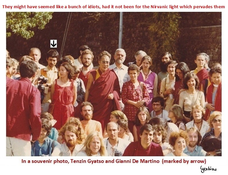 In a souvenir photo, Tenzin Gyatso and Gianni De Martino (marked by arrow)
