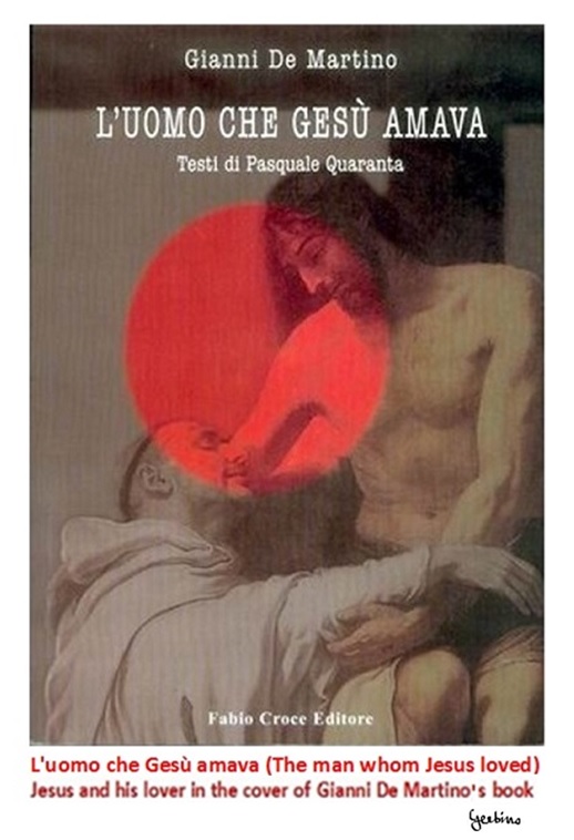 He contemplated Jesus several times together with his lover, even on the occasion of the Last Supper, when that man rested his head on Jesus' breast. Thus Gianni De Martino wrote a treatise, "L'uomo che Gesù amava" (The man whom Jesus loved), in whose cover he showed Jesus and his lover.