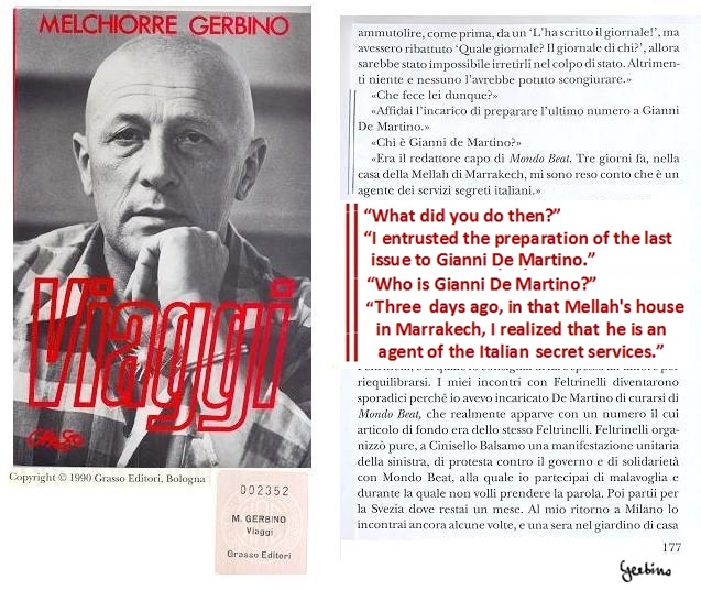 On page 177 of "Viaggi" (Travels) Melchiorre Gerbino revealed that Gianni De Martino was an agent of the Italian secrete services.